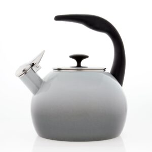 · Ergonomic stay-cool handle facilitates easy pouring and handling; Stainless steel single-tone whistle lets you know when your water has boiled